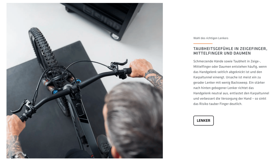 Als Möglichkeit der Entlastung der Hände, Rücken und Nacken gibt es Lenker, Griffe und Innerbarends, die je nach Problemzone(n) eingesetzt werden.